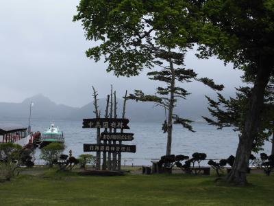 天気が心配だったけれど念願の洞爺湖遊覧船に乗りました。遊覧船には「幸福」「羊蹄」と「エスポワール」があります。船内にはショップやコーヒー店などがあり50分の船旅を楽しむことが出来ます。中島に下船すると30分長くかかりますが、せっかくなのでやはり下船したいと思いました。
