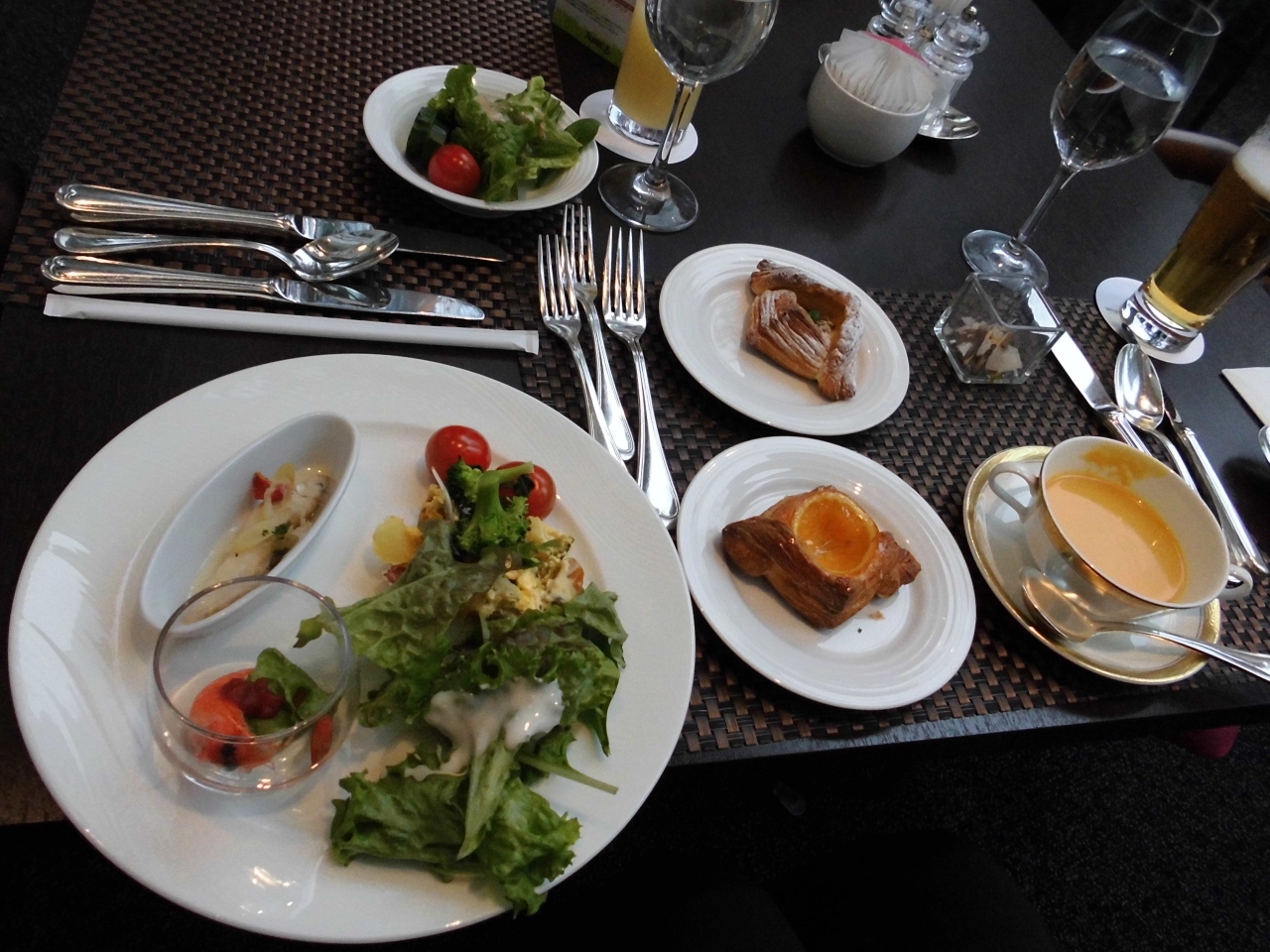 サラダやデザートは、あまり種類が多くなかったけれど美味しくいただきました。ドリンクはコーヒーか紅茶でしたが、少しジュースなどもあると嬉しいと思います。アイスクリームがアルのは嬉しかったです。