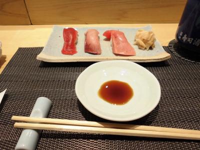 お寿司は大体カウンターでいただきますが、ここでもカウンターをお願いしました。感じのいいお兄さんが1個ずつ握ってくれます。季節のおすすめ握りを注文しました。