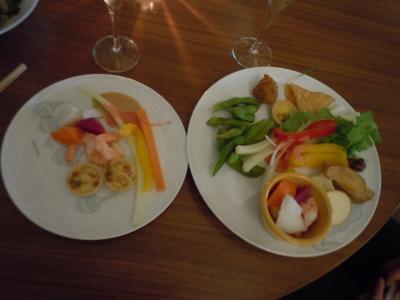 夕食は、食事処{さくら」で和食をいただきました。ヘルシーな蒸し野菜や炊き込みご飯、季節の桜デザートなど美味しくいただきました。朝食のバイキングは、窓が広くて眺めのよいレストランで気分よくいただきました。