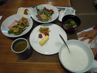 お楽しみの夕食は、品数も内容も充実していて、満足のいくものでした。朝食も、地元のものが生かされていて「朝ご飯」という言葉がぴったりの美味しい朝食でした。ラウンジで食後のコーヒーがいただけるのも嬉しいサービスです。