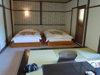 全部で7室の隠れ家的な旅館です。部屋からもロビーからも由布岳が見える素敵なところでした。部屋に入ると広めの和洋室で、窓のところにはゆったりと座って寛げるいすがありました。檜風呂も広めで家族では入れそうな感じです。もちろん温泉です。