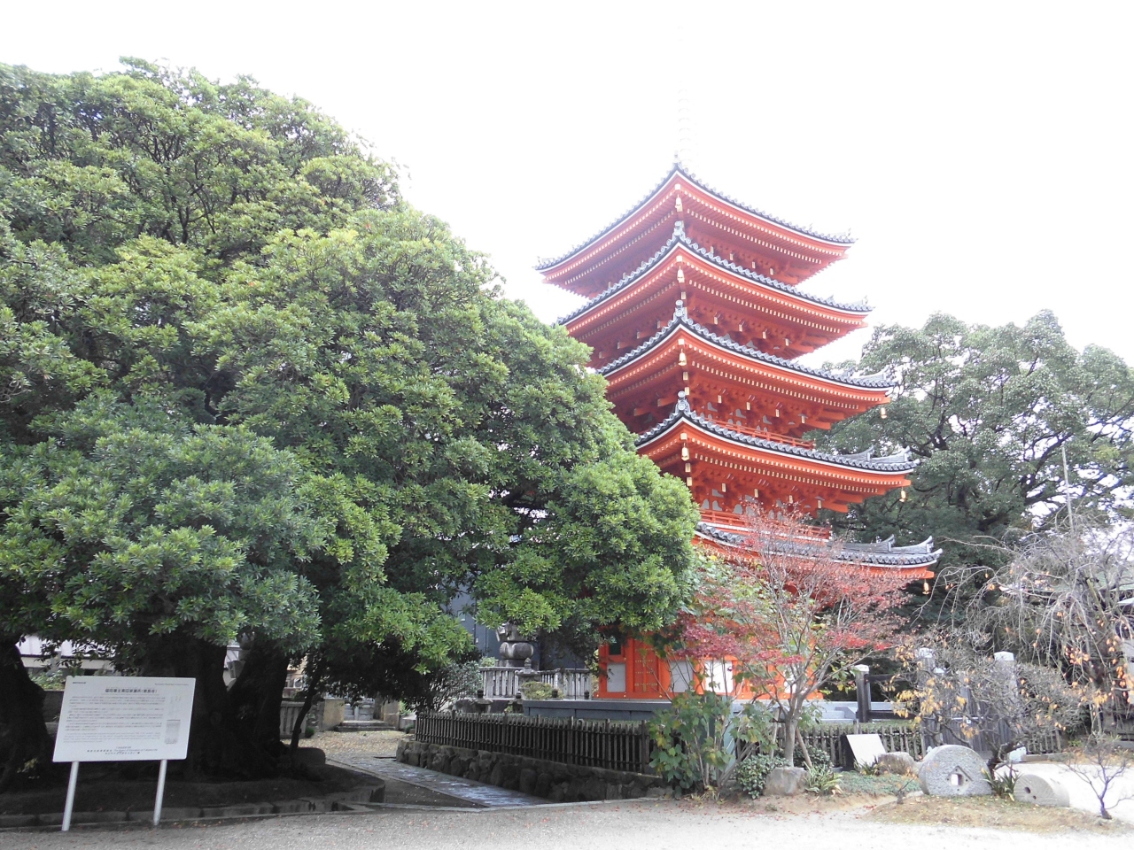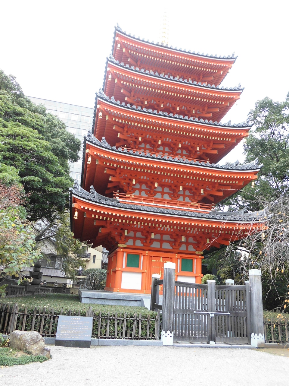 古い六角堂や木造の大仏様と並んで大変見応えある五重の塔です。東長寺気に入りの場所になりました。