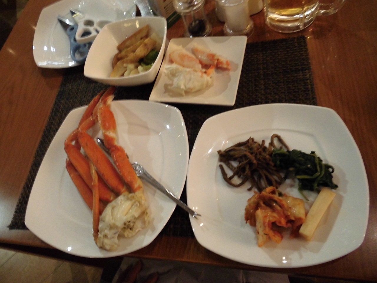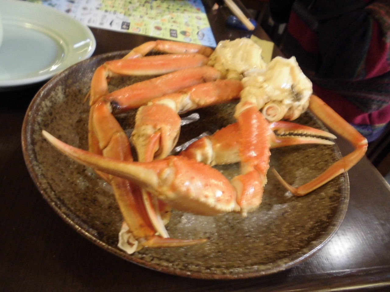 温泉の次はお楽しみの夕食ですが、ズワイガニが出されるということなので楽しみでした。大きめで身がしっかり入っていたので私は3,4本でお腹いっぱいになりました。友人は蟹に目がないのでたくさん食べたようです。デザートが食べたかったのですが、食事をいっぱい食べすぎてアイスクリームだけしか食べられませんでした。翌朝のご飯も食べられなくてお粥少々にしました。ちょっと残念。 また次回を計画したいと思っています。
