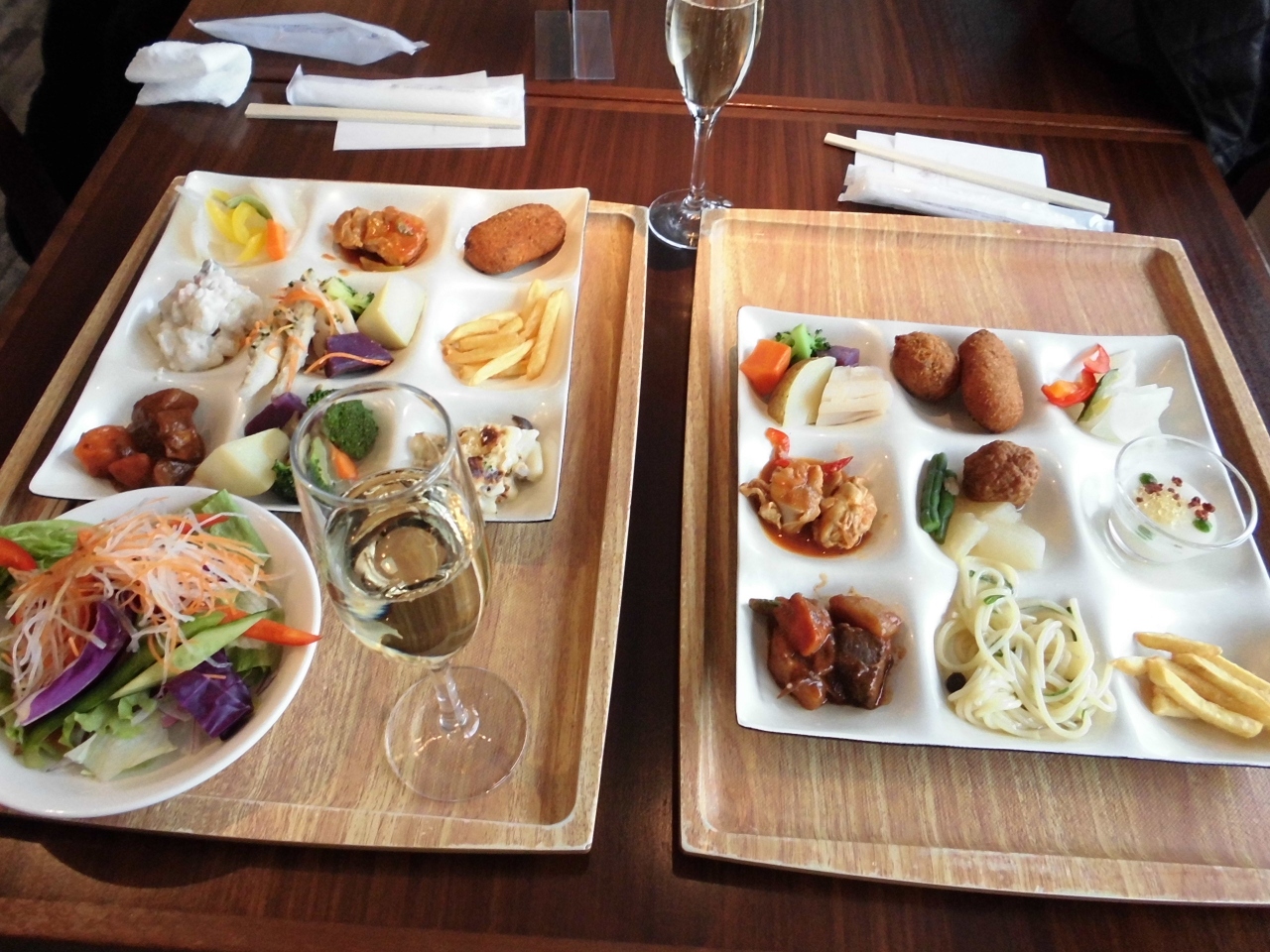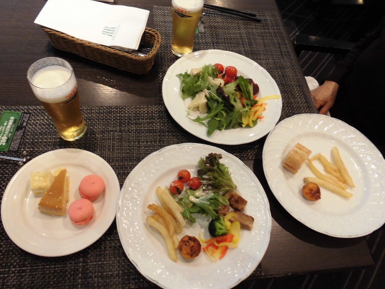 大阪駅直結のホテルレストランでお手頃価格なのがいいと思います。料理は種類が多くて美味しかったです。私はワンドリンクのスパークリングワインとデザートが気に入りました。お肉や野菜、コロッケなどいろいろ頂きました。ステーキは焼きたてを少量ずつ頂くのでさめないで食べられました。夜はコースも出されるとのことなので行ってみたいと思います。