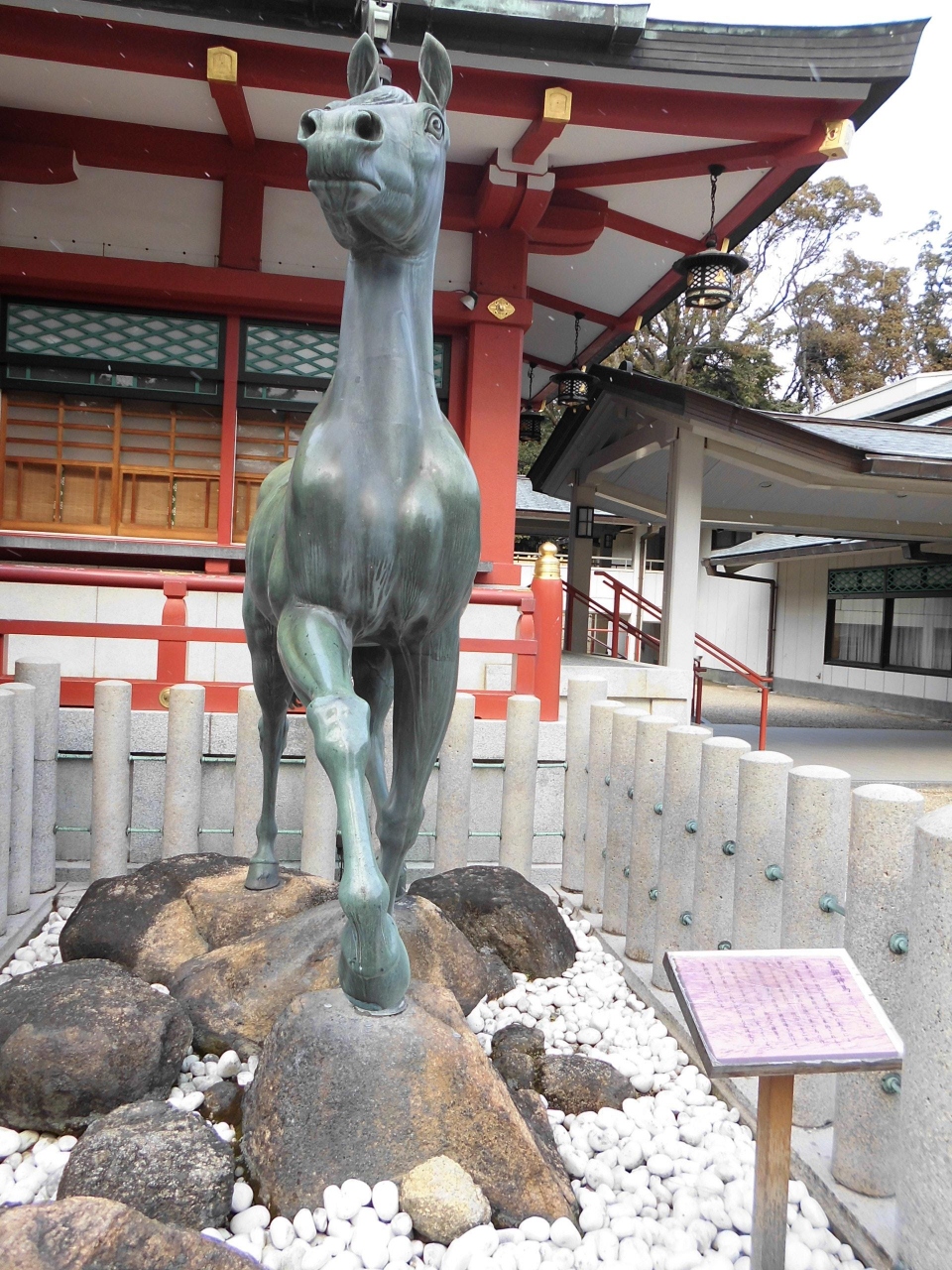 街中にあるので時期によっては賑わうのでしょう。行って見た感想は前から知っていたような気分でした。本殿の前に馬の像があったのが印象的でした。