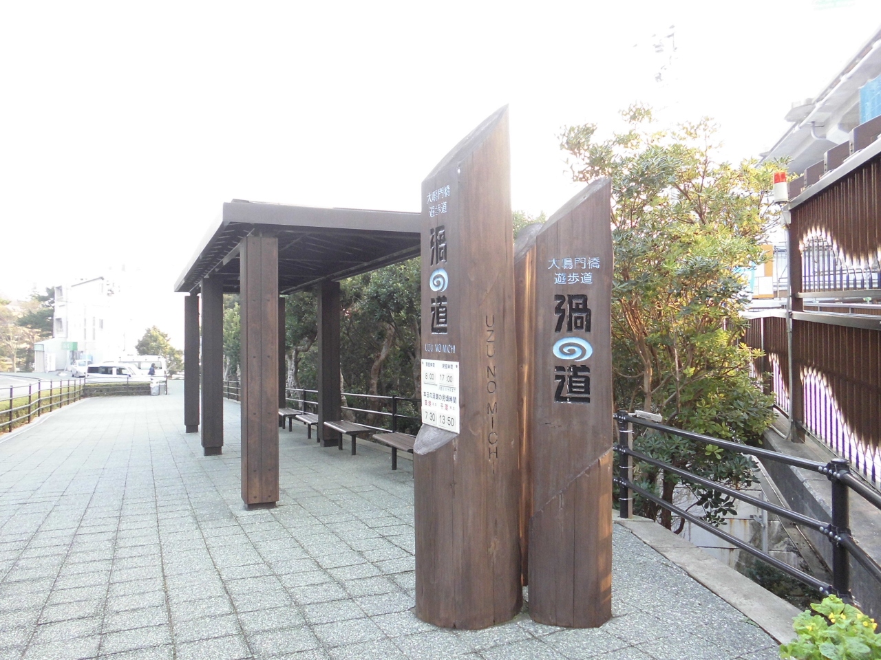 高速鳴門のバス停から下の観光案内所に降りてきて見つけました。バス停にアクセスするための乗り物で鳴門市が設置したそうです。帰りのバスに乗るときに利用しました。