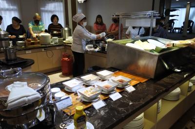 夕食ブッフェは温かい物は冷めていてとても残念でした。