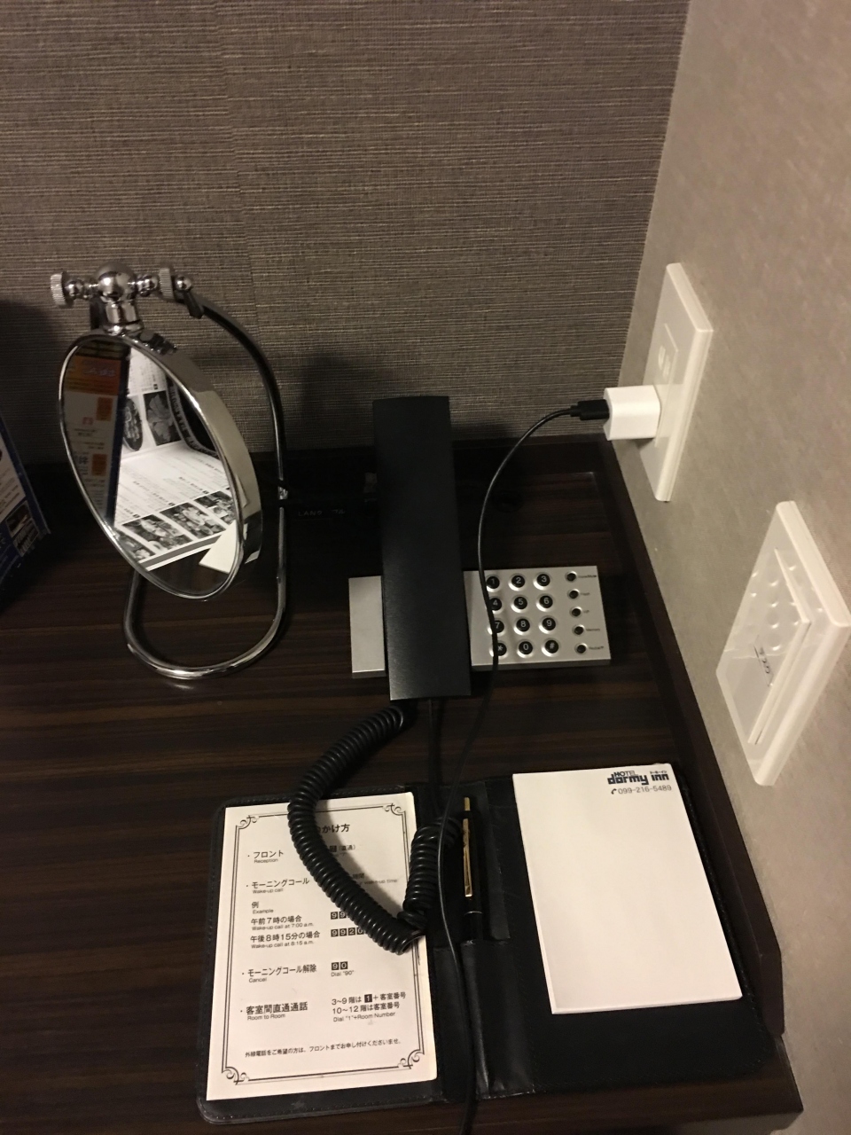 カプセル内のコンセントはふたつありましたので、スマホとデジカメの充電ができました。