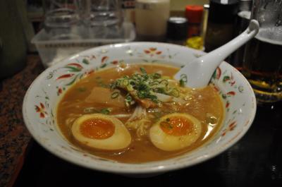 満州ジャンメンは、ホルモン・ニラ・卵の甘辛あんかけかせたっぷり載ったラーメンでボリュームたっぷり、熱々でしたがおいしかったです。