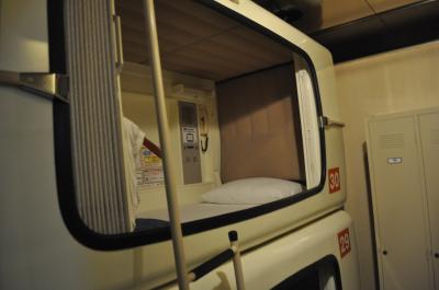 カプセルホテルですが、カプセルのそばにロッカーがあり、カプセル内も内側からカギがかかります。
