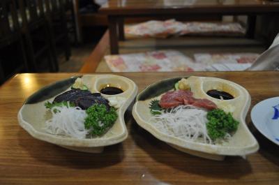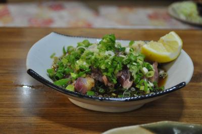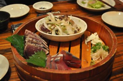 名物の塩たたきとタレたたき、それに刺身の鰹三昧、気まぐれ漁師のサラダ、鯨の竜田揚げ、どれもおいしくいすただきました。