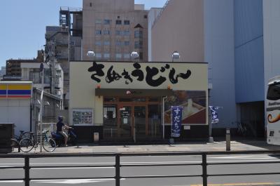 神戸港から深夜フェリーで高松港へ、連絡バスで高松駅に午前5時台に到着、早朝から営業していますので、便利です。