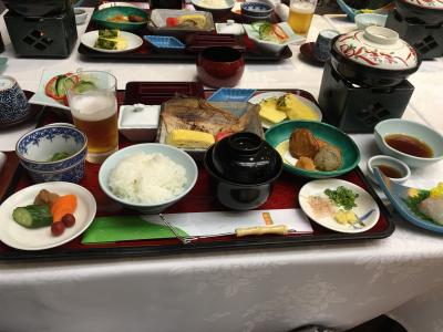 夕食は、食べきれないほどのメニュー、朝食もボリュームたっぷりでした。