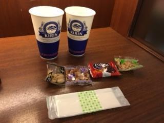 おつまみは、柿の種とかピーナッツとか、小袋に入ったものだけですが、呑兵衛にはじゅうぶんです。(笑)