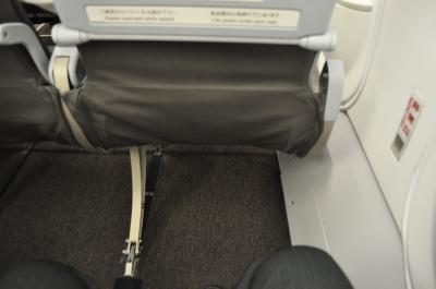行きは、非常口席をあてがわれ広々、こんなに安い料金で申し訳ないくらい。(笑)