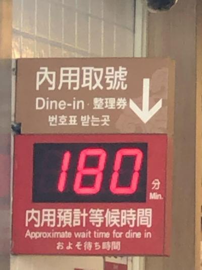 11時20分ごろにお店に行くと、既に行列、店頭には180分待ちの表示がありました。