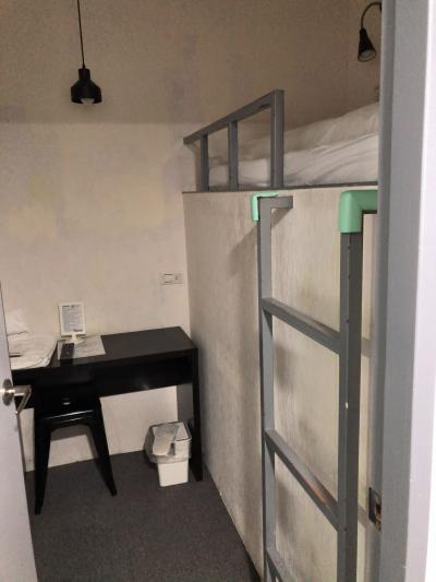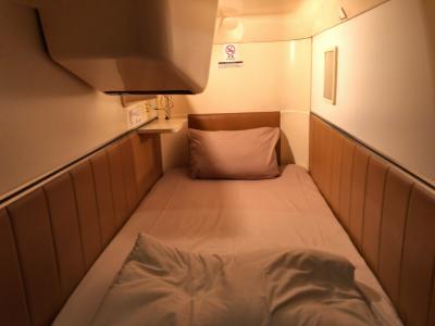 部屋はいくつかの種類があるようですが、私たちが泊まったのは、2段ベッドを上下シェアするタイプで、かつてのB寝台ソロのような作りになっています。