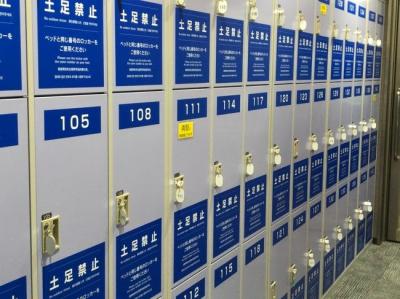 その先は土足禁止、ロッカーがずらりと並んでいます。