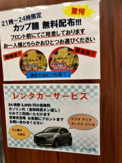 おふろもあります。夜食用のカップ麺もサービスでした。