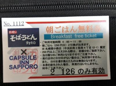 また、朝食引換券ももらえます。朝早いと近くの24時間営業の立ち食いそば屋さんの利用になりますが、これだけ付いて2千円台はお得だと思います。- 旅行時期
