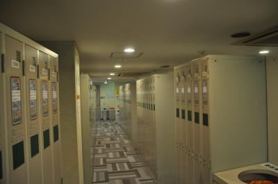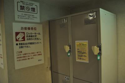 フロントでロッカーのカギを受け取りロッカールームへ、キャリーケース等大きめな荷物は500円のコインロッカーに入れます。もちろん荷物出すときにお金は戻ってきます。