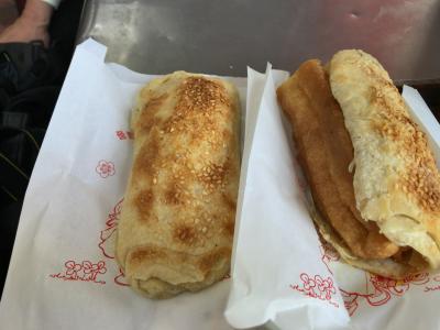 また、焼餅は卵入りのと揚げパン入りのとを購入、揚げパン挟んだサンドは不思議な食感でした。- 旅行時期