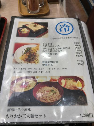 入口に「もりおか三大麺セット」が飾ってあったので、まよわずそれをを注文しました。ほかのお客さんもそれを注文していたみたいです。