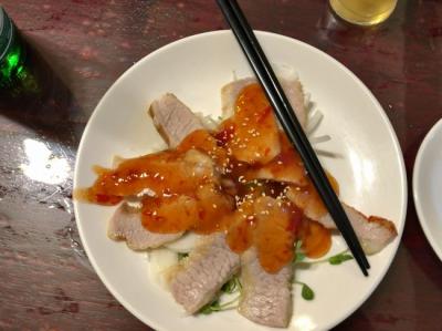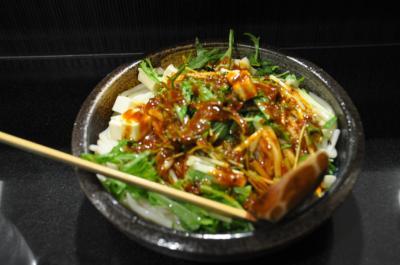 豚肉になす・キュウリ・ネギ・温玉がのったピリ辛つゆでおいしくいただきました。- 旅行時期