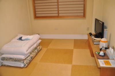 部屋は和室、バストイレは共同でした。風呂は小さいながらもサウナも付いていて疲れが取れました。また、シャワールームもあります。