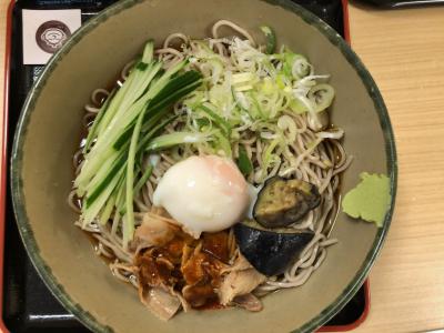 メニューがたくさんあるので迷いましたが、暑い夏、冷たいおそばということで「冷し肉そば温玉のせ大盛」を注文しました。