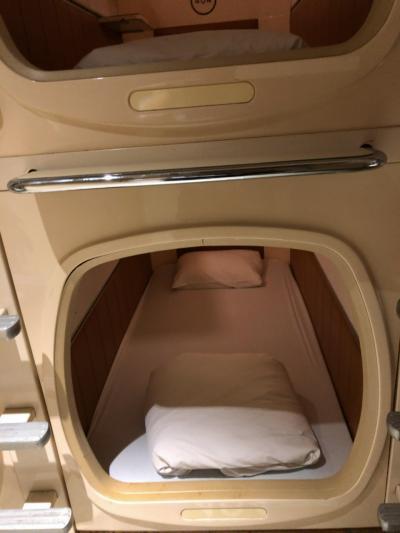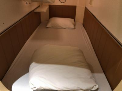 客室内は、一般的なカプセル、コンセントはふたつありました。テレビのスペースはありましたが、テレビはありませんでした。