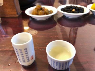 お茶は、1人300元、初めにお店の方にお茶の入れ方を教えてもらい、あとはセルフでいただきます。お茶菓子のうち、黒豆のお菓子がおいしかったです。