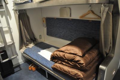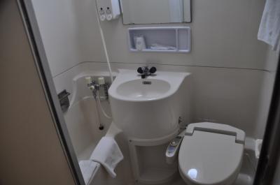 客室はベッドにテレビに冷蔵庫、バスは少し広めでした。また、バスには小さなテレビも付いていました。