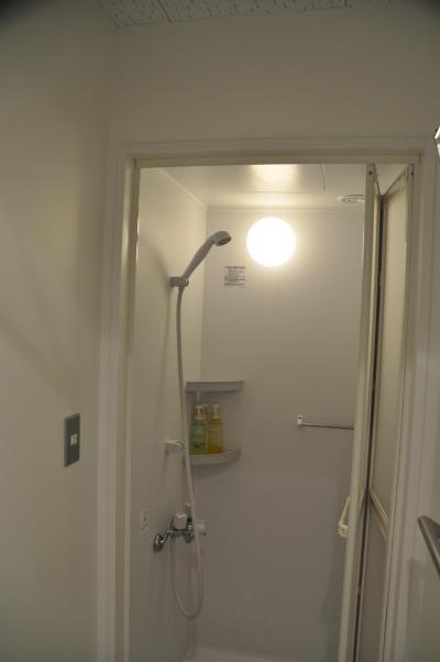 バストイレは共用、部屋も個室とはいえ、ベッドとテレビ、小さな机といすが置いてある狭いスペースですが、寝るだけなら十分です。