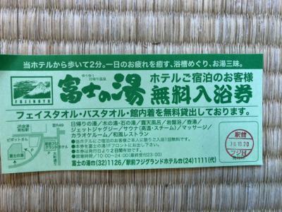 また、宿泊客には近くのスーパー銭湯(温泉)「富士の湯」の無料入浴券ももらえます。いろいろなお風呂に入れてよかったです。ボイントup
