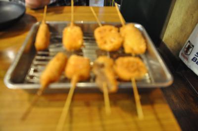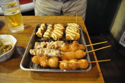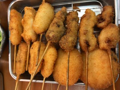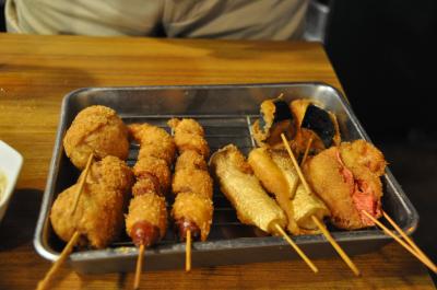 いろいろな串カツに加え、キムチやホルモン焼き等串カツ以外の料理もいただけて、それで2,480円でした。ごちそうさま。- 旅行時期