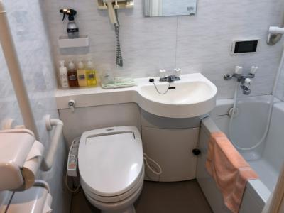 バストイレは、ひと昔前のタイプ、バスにお湯を半分も入れれば身体を入れるとお湯があふれます。