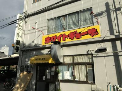 住宅地の中にあります。ホワイト餃子らしく白い看板もあります。