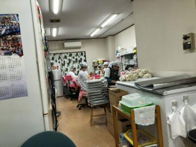 中は4人がけテーブルが3つ、奥では数人で餃子を作っていました。