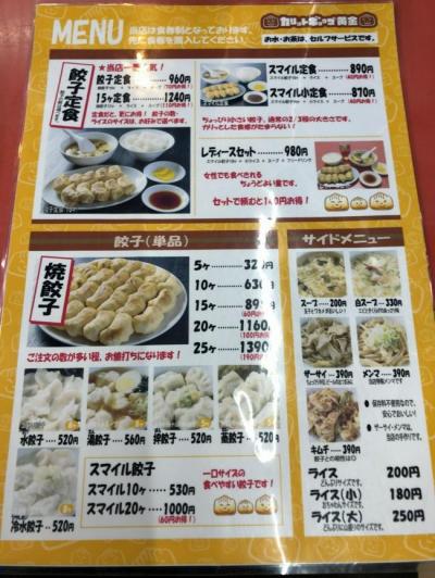 餃子は5個単位で注文できます。また、ひと回り小さいスマイル餃子というのもありました。