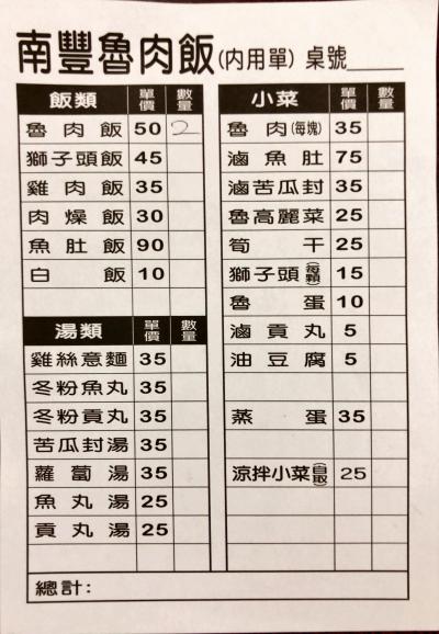 魯肉飯が有名なお店ということで、オーダー表に書いて魯肉飯を注文、すぐに出てきました。