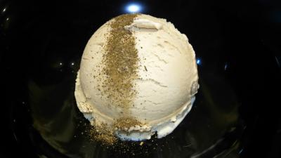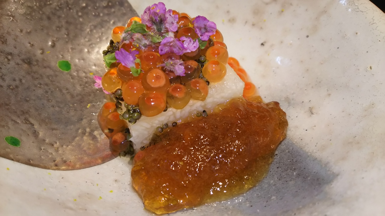 山口県産四星(よつぼし)苺のパフェには銀箔が、