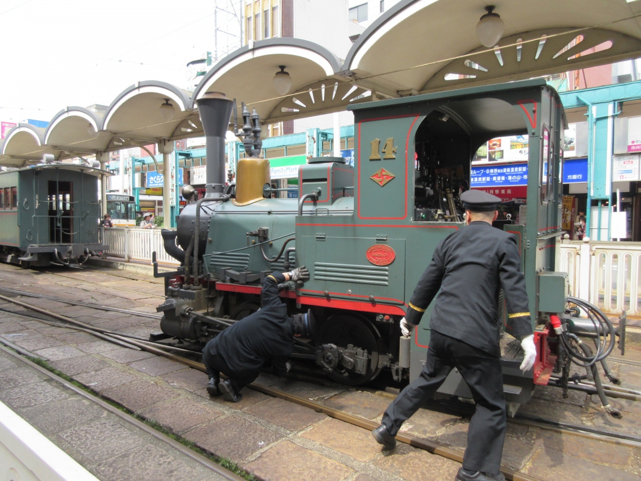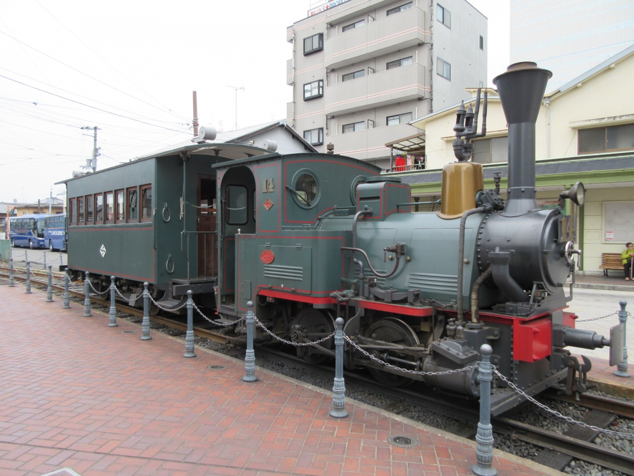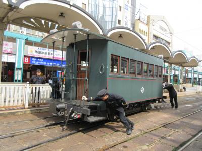 松山市駅と道後温泉を結ぶ坊ちゃん列車。