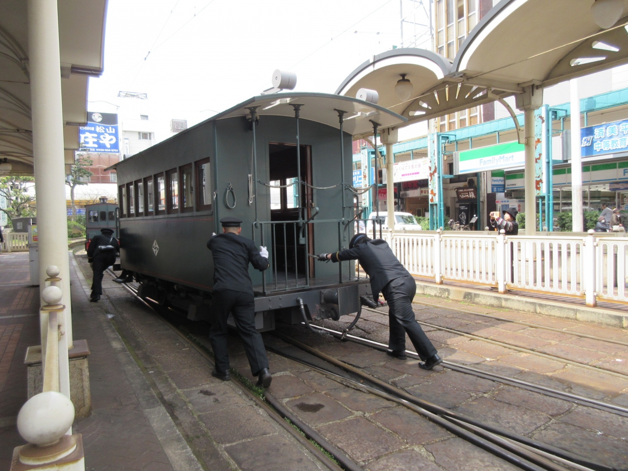 終点では、手動で車両の向きを反転させる様子も見れます。