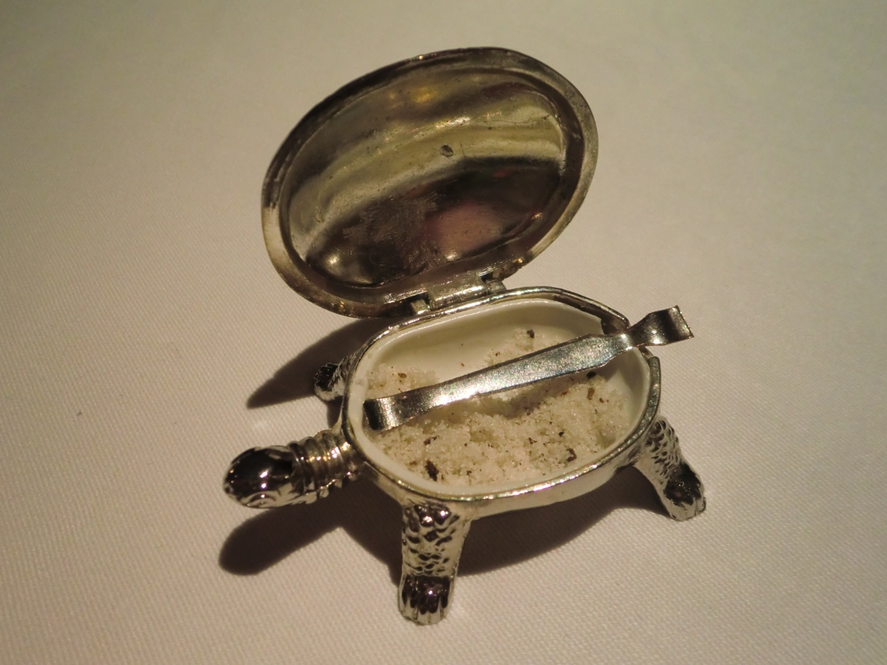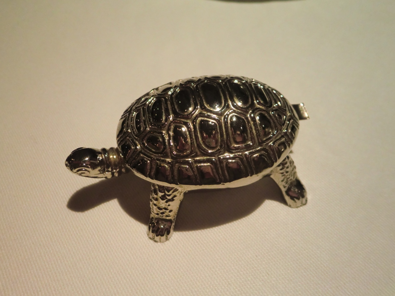 小さな飾り用の亀、亀のソルト入れ、逸話つきの大きな亀など、