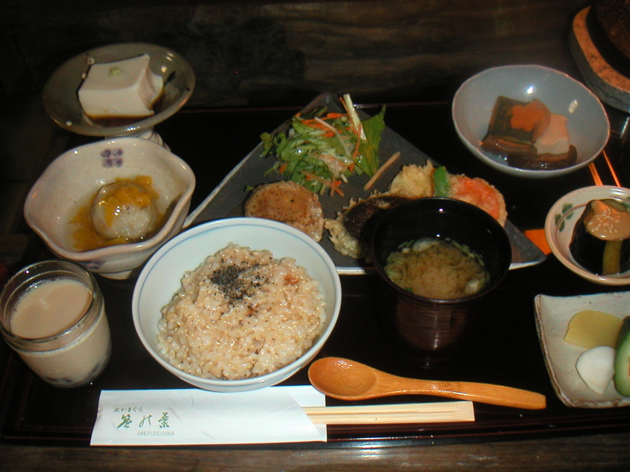 玄米菜食のお膳や、自然食中心の笹の葉懐石(要予約)。