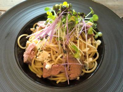 パスタ、サンドイッチ、ビーフストロガノフなどのフードメニューがけっこう充実。