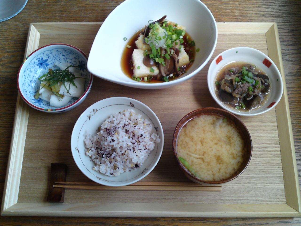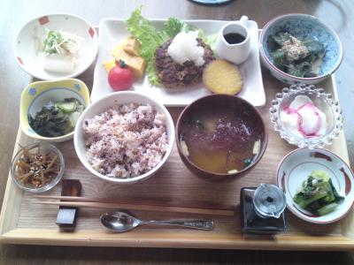 写真のランチ「週替わりごはん」はヘルシーメニューですが、