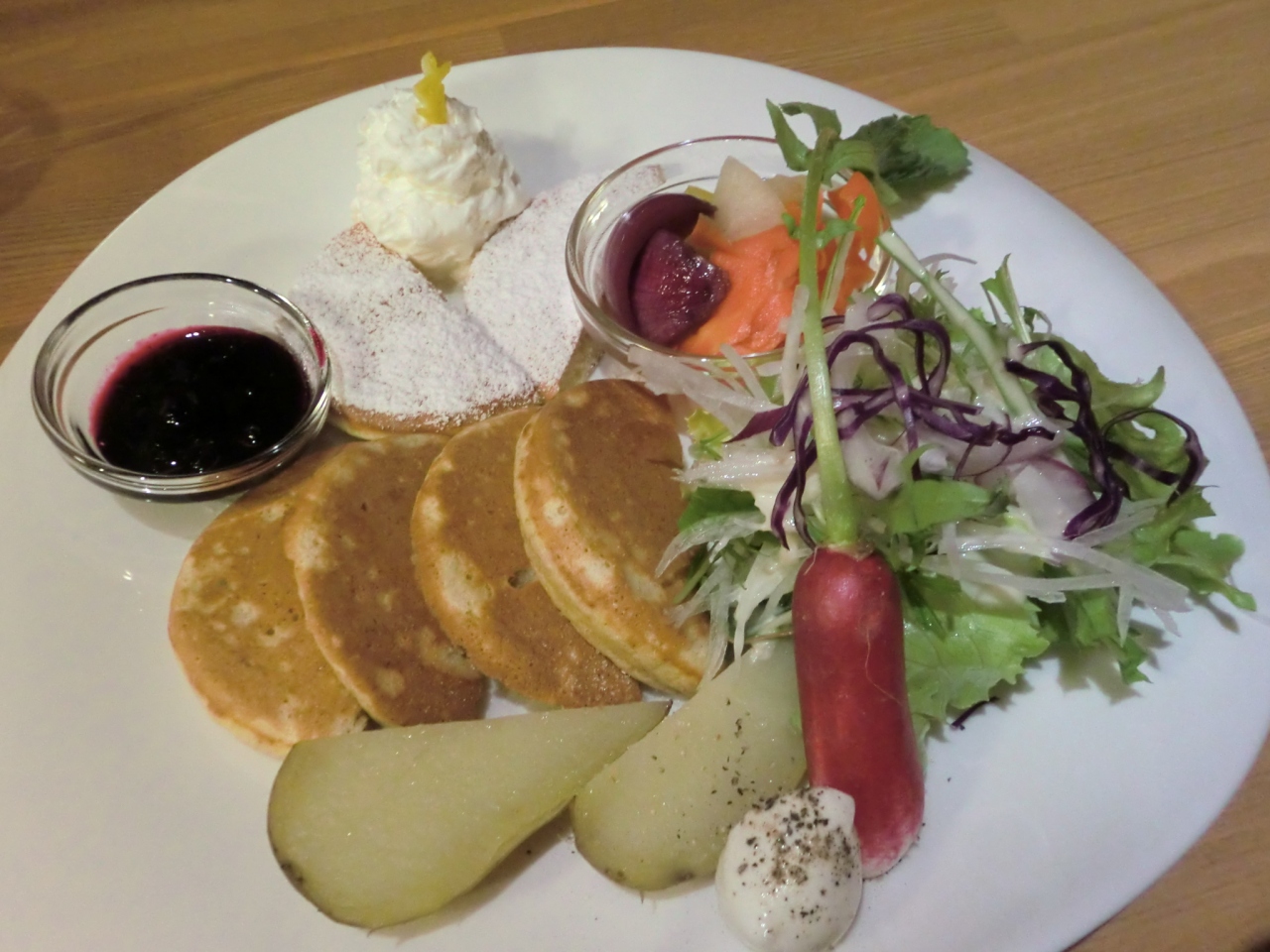 パンケーキ、スープ、サラダ、フレッシュジュースがついて997円とかなりお得。